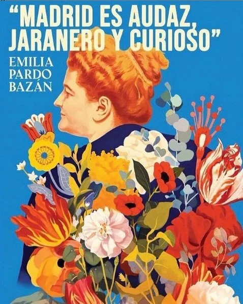 También quería mostraros el cartel dedicado a Emilia Pardo Bazán, en el año del centenario de su fallecimiento, realizado por David de las Heras. El ilustrador bilbaíno decora con flores y mucho color la imagen de la escritora gallega.